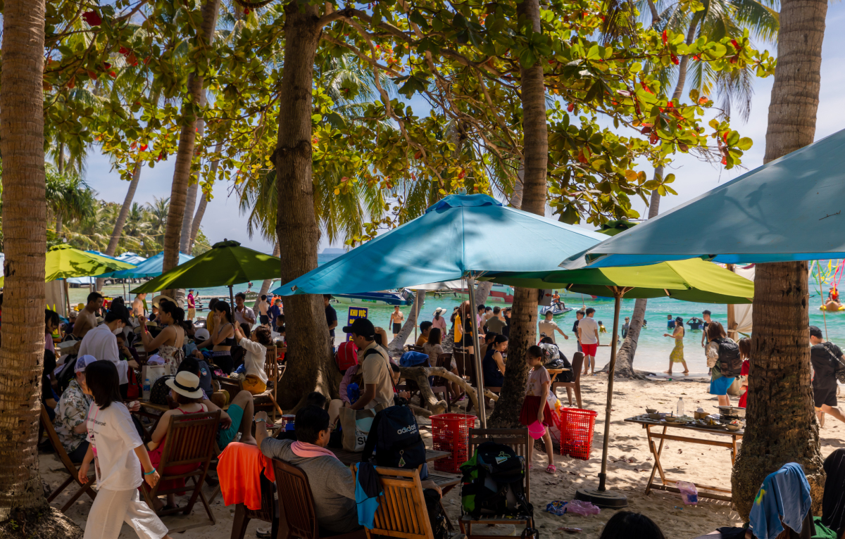 Phú Quốc (Kiên Giang) thời tiết đẹp, trời nắng ấm. Từ ngày 29/1 đến 6/2 (27 đến mùng 6 Tết), thành phố đón 79.000 lượt khách. Trong đó các đảo ở Nam Đảo, chợ đêm, khu vui chơi giải trí Sun World Hòn Thơm, Grand World ghi nhận đông du khách. Trên ảnh là du khách vui chơi, nghỉ ngơi ở hòn Mây Rút trong sáng 5/2. Ảnh: Phan Phương